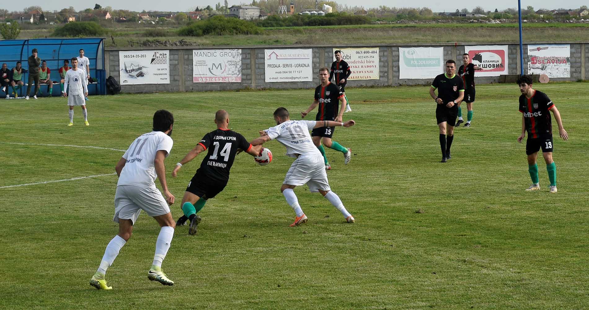 Занимљива утакмица два зонаша из пећиначке општине, где је после десетак минута игре Слобода головима Павловића и Ђорђевића (два) повела 3:0, те се чинило да је Доњи Срем 2015 пред убедљивим поразом. Ипак, част гостију одбранио је прелепим поготком Милановић неколико минута пре краја првог полувремена. Голгетер Пећинчана, Никола Кокир у наставку утакмице постиже гол и општински дерби постаје далеко узбудљивији. Ипак, све дилеме отклања голом Матовић, те је резултат 4:2 био и коначан.
